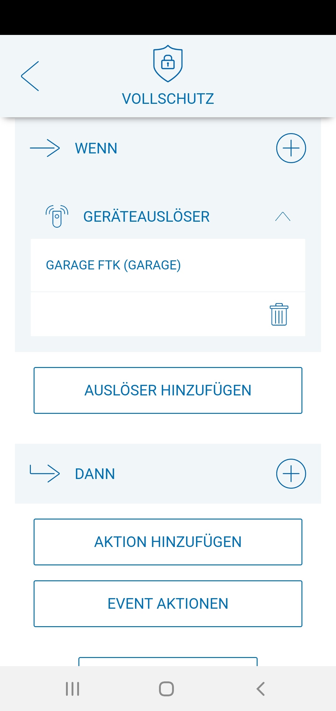 Tippen Sie auf AKTION HINZUFÜGEN, um eine Aktion hinzuzufügen, die im Falle eines Alarms ausgelöst werden soll. Hier gibt es verschiedene Möglichkeiten.