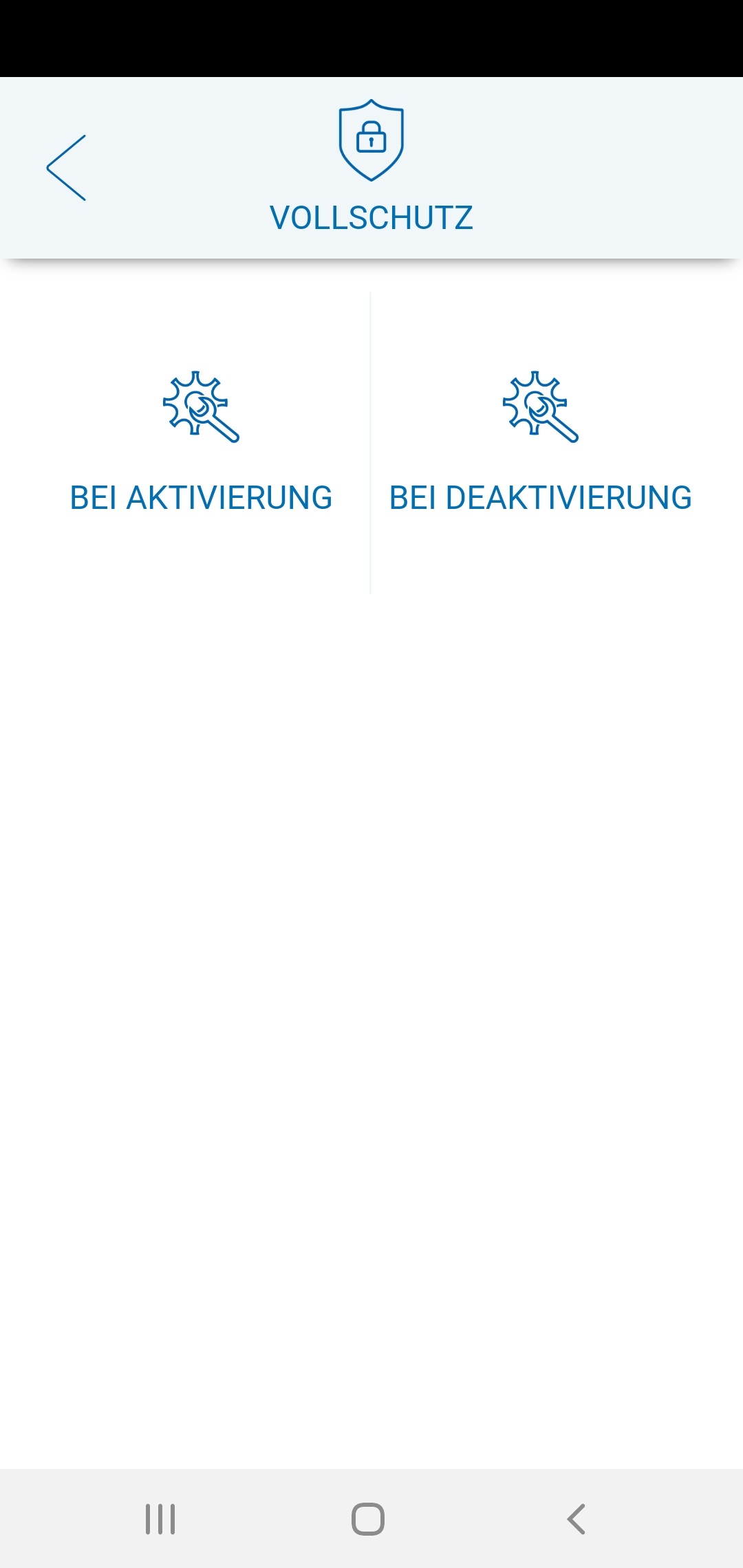 Um den Alarm zu konfigurieren, gehen Sie in EINSTELLUNGEN -> ALARM. Wählen Sie HÜLL- oder VOLLSCHUTZ und tippen auf ALARM KONFIGURATION.
