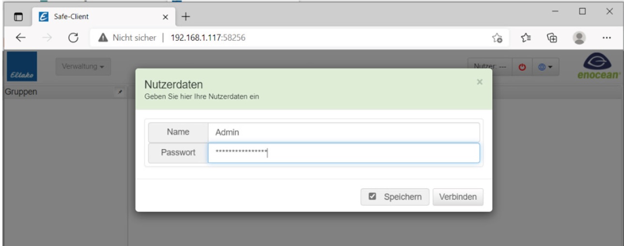 b.) Nutzer: Admin und zugehöriges eigenes Passwort (oder den Masterkey, wenn kein eigenes Passwort vergeben wurde)