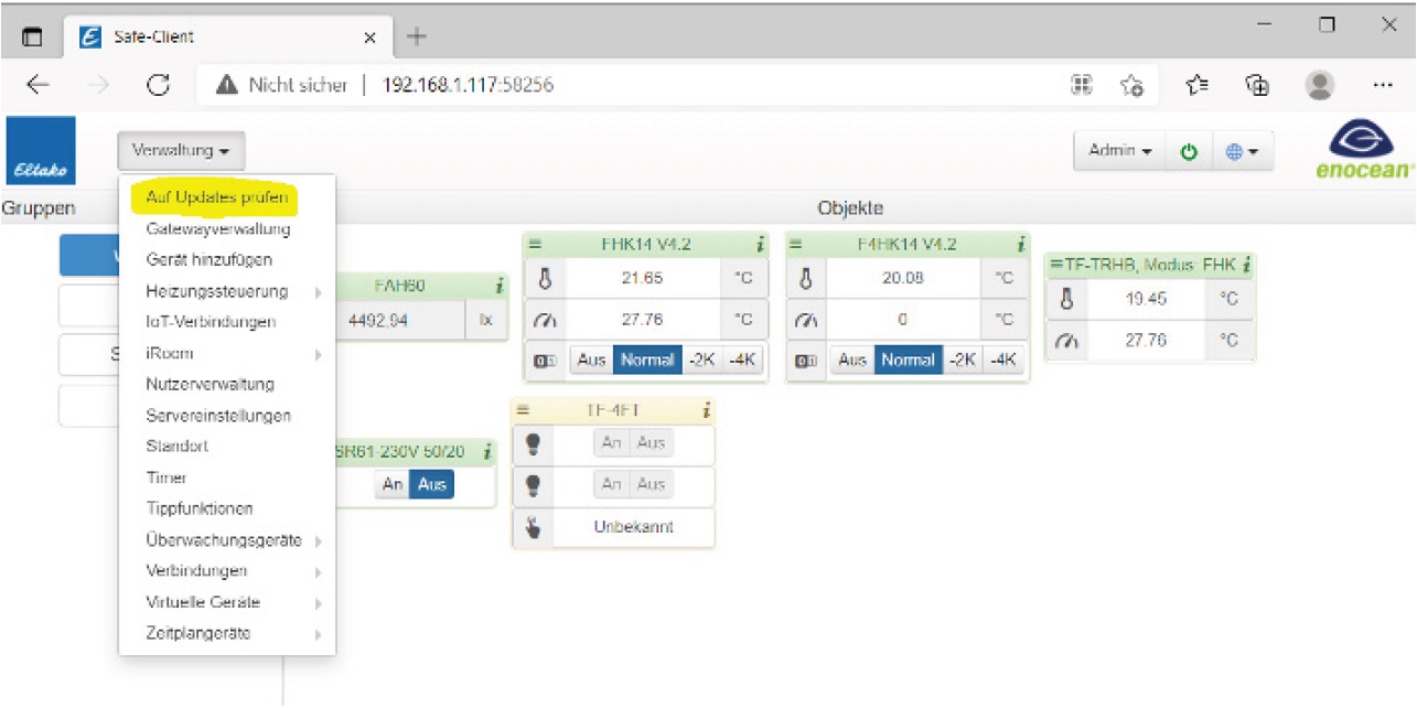 - a.) Gehe über das Hauptmenü über ACCOUNT -> CLOUD und wähle den Menüpunkt ELTAKO CONTROLLER MIGRIEREN.