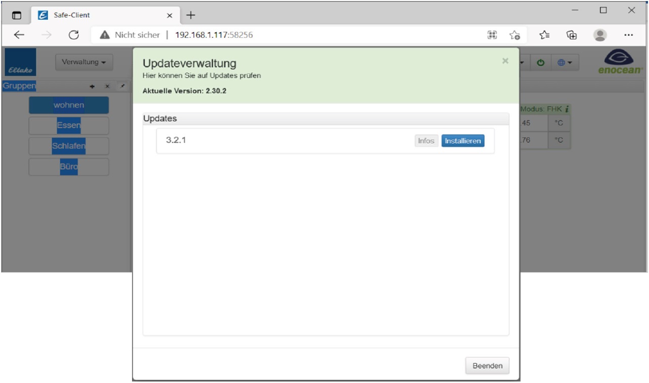 e.) Die Version 3.2.1 wird installiert, „REST Geräteexport“ wird im Hintergrund aktiviert.