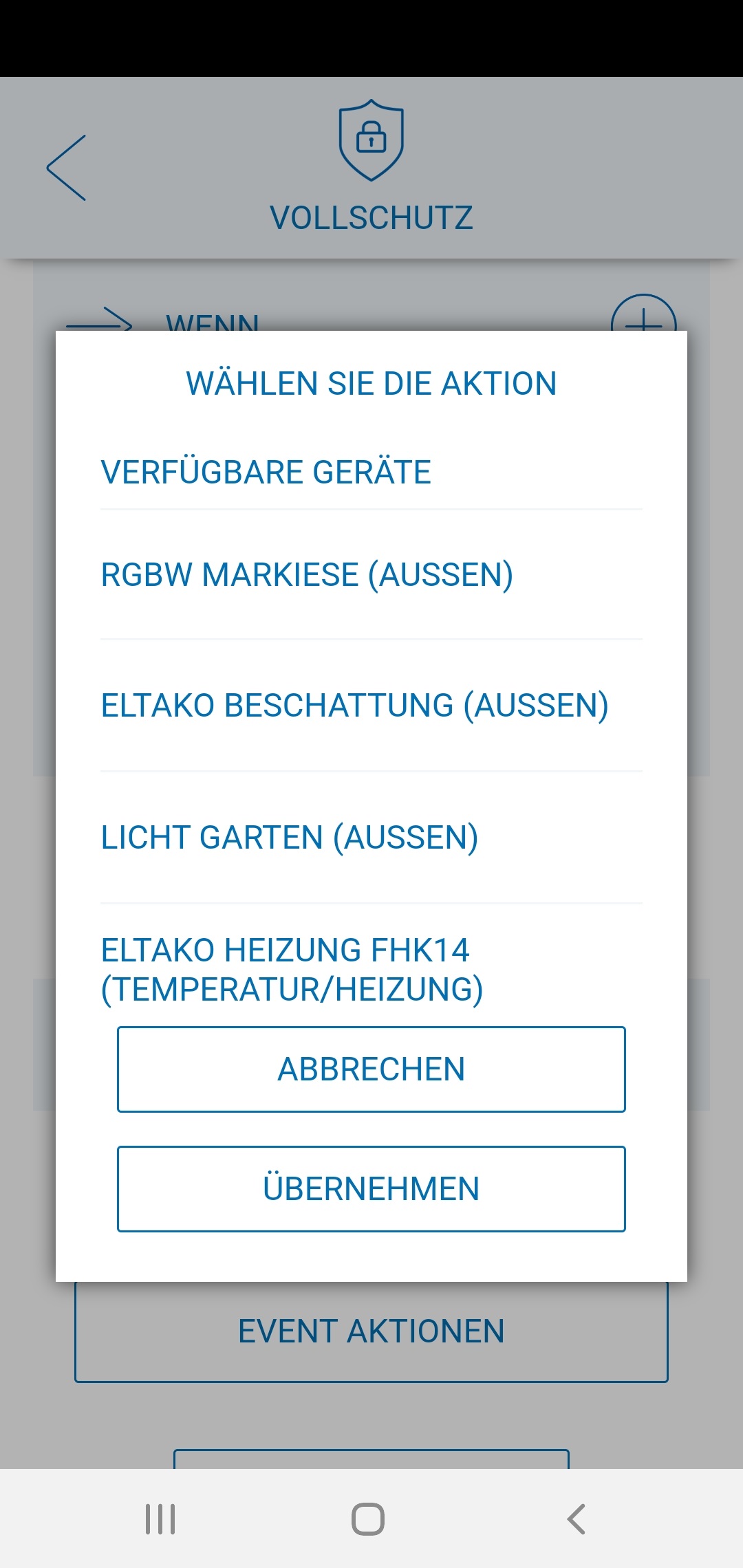 Tippen Sie dazu auf EVENT-AKTIONEN und wählen BEI AKTIVIERUNG oder BEI DEAKTIVIERUNG und fügen Sie die gewünschten Aktionen hinzu.