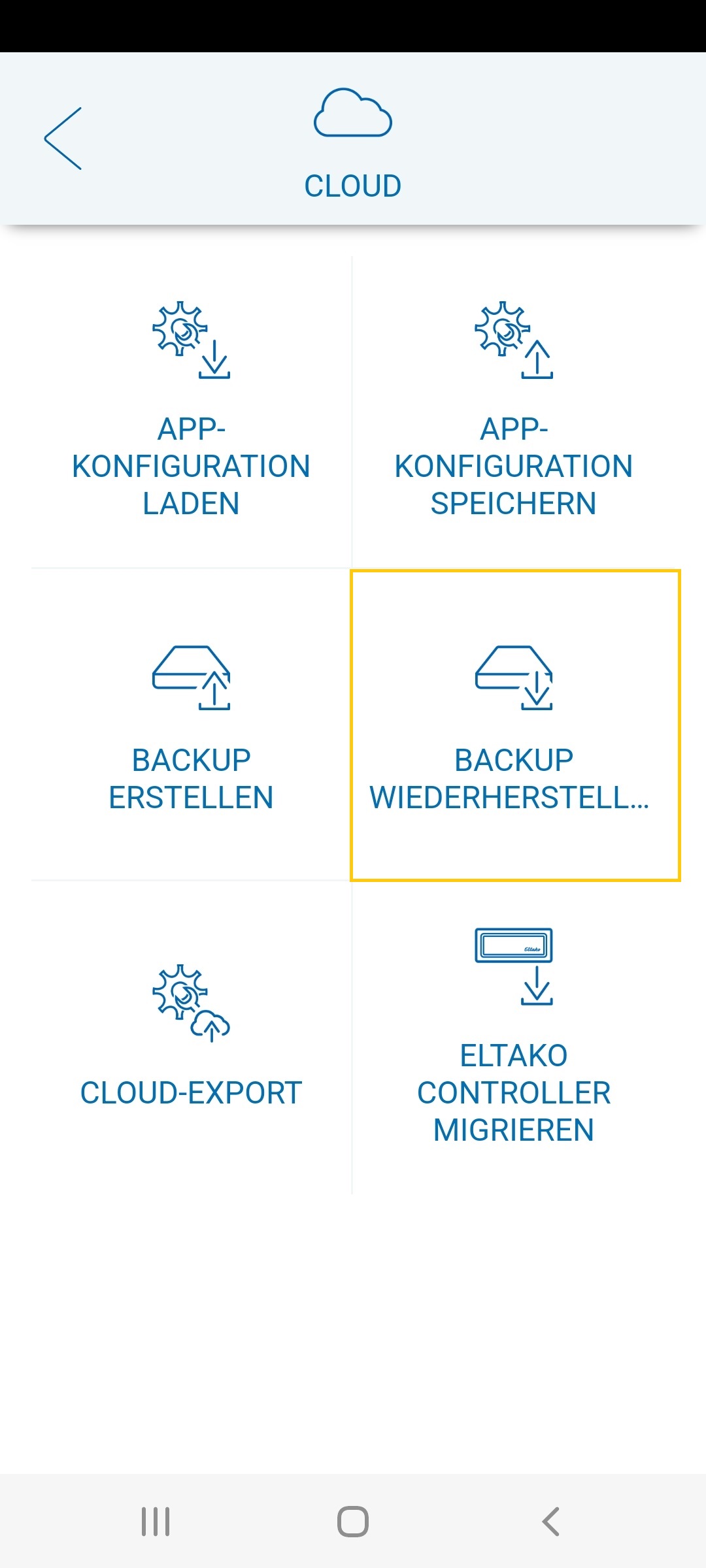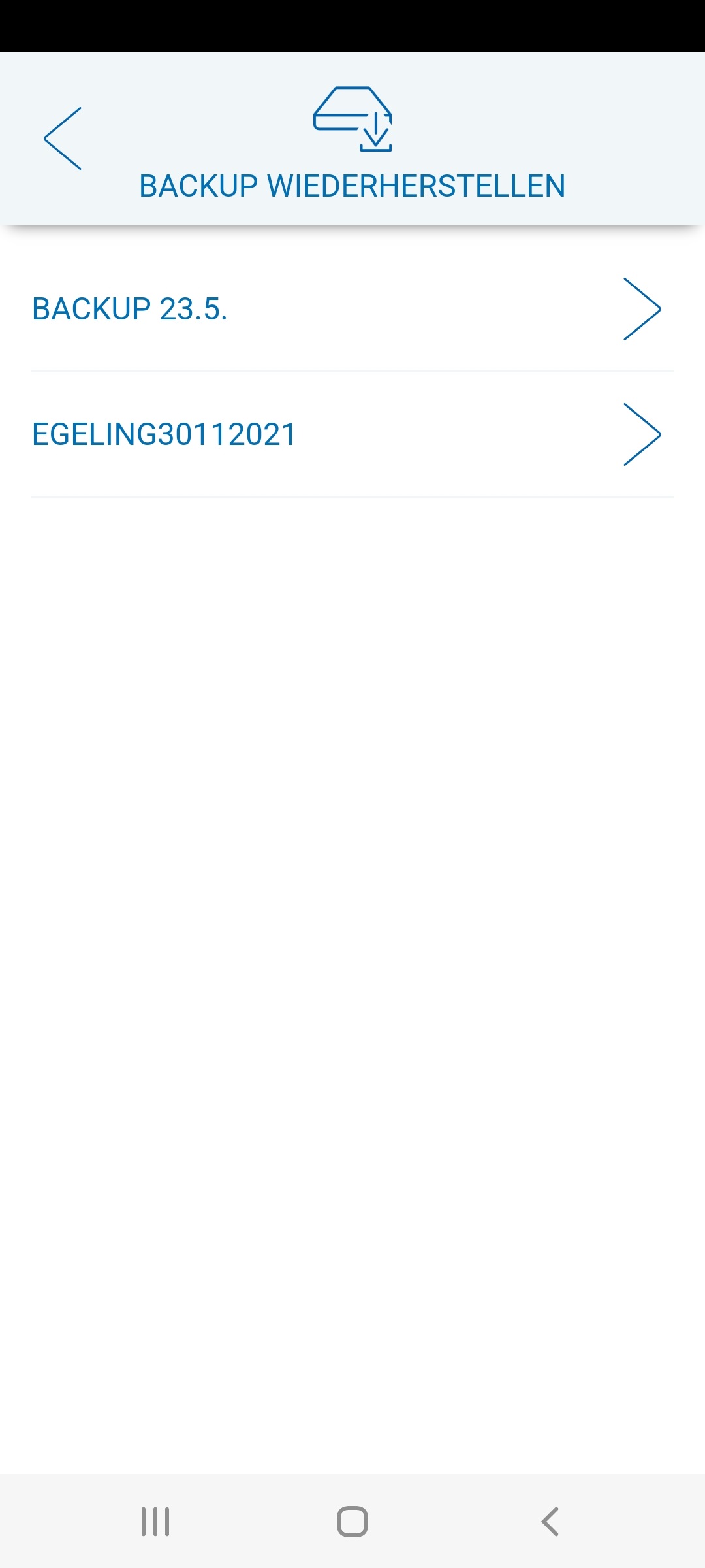 Ein Backup können Sie wiederherstellen, indem Sie im Hauptmenü unter ACCOUNT –> CLOUD wählen und hier auf BACKUP WIEDERHERSTELLEN tippen.