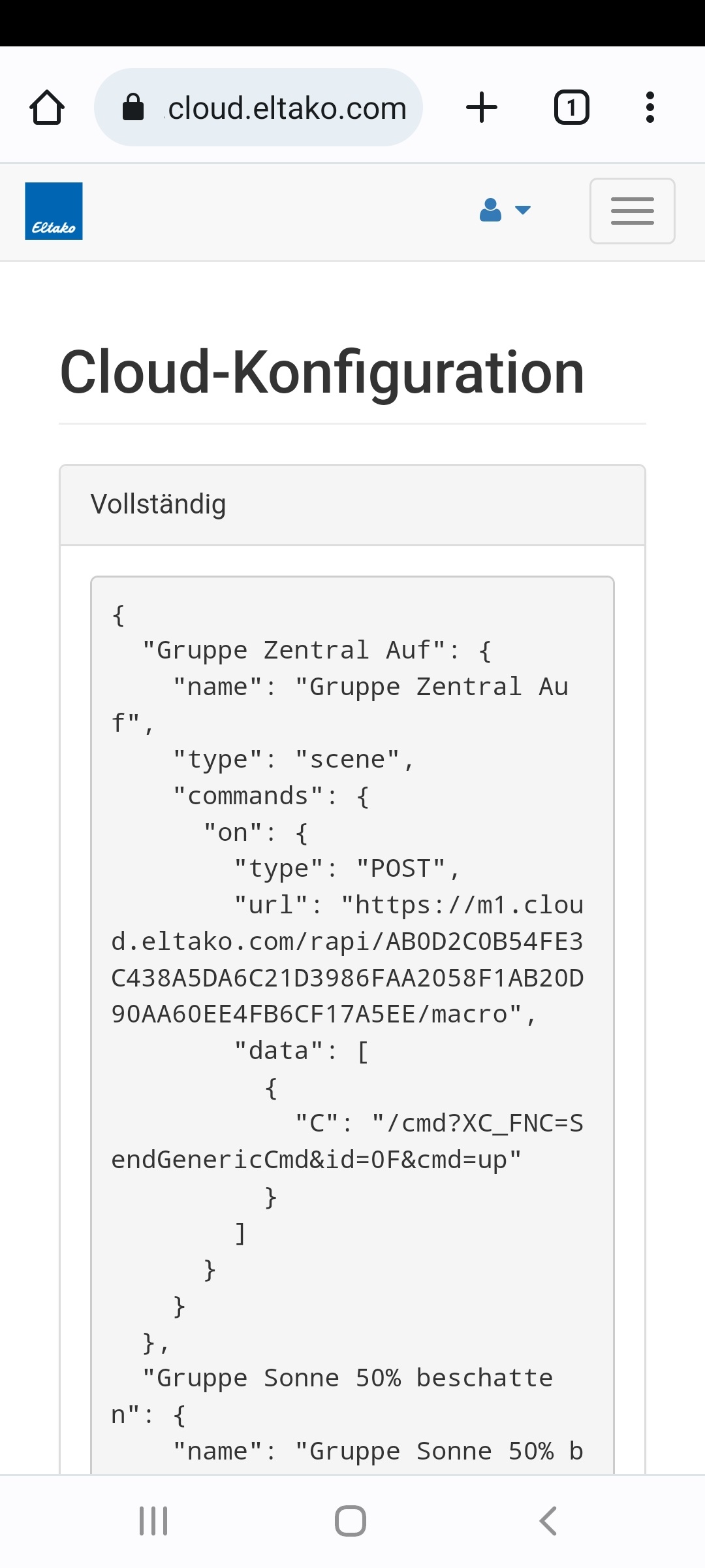 Unter dem Menüpunkt VOLLSTÄNDIG findet sich die vollständige Cloud-Konfiguration der in die Cloud übertragenen Geräte.