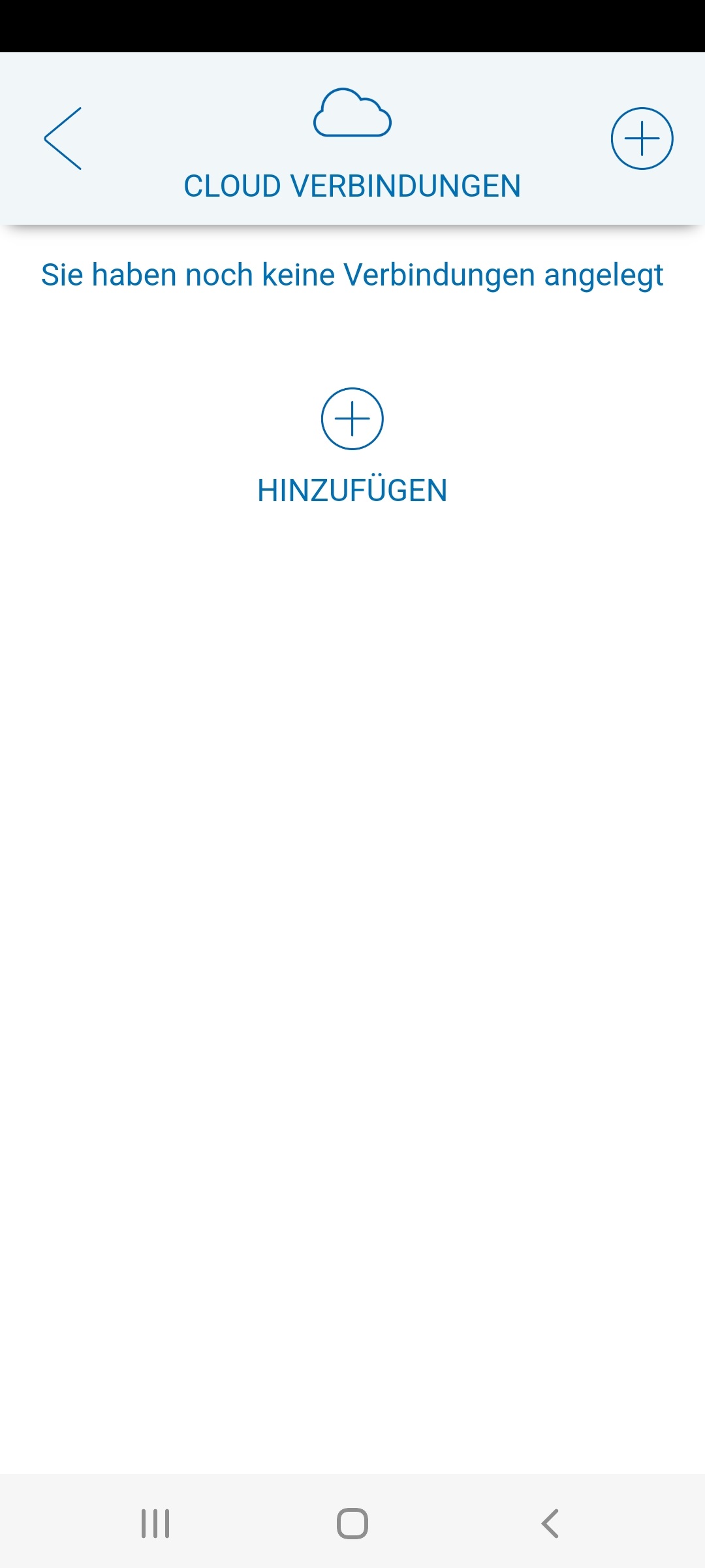 Legen Sie nun eine neue Cloud-Verbindung an, indem Sie auf das + SYMBOL tippen.