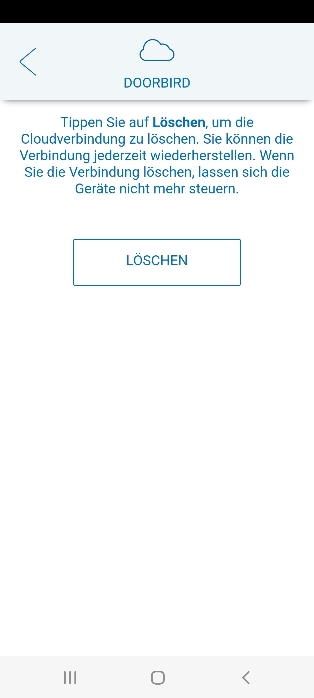 Um eine Cloud-Verbindung zu löschen, gehen Sie unter ACCOUNT –> CLOUD –> CLOUD VERBINDUNGEN . Nun werden Ihre bestehenden Verbindungen abgerufen. Wählen Sie die Verbindung aus, die Sie löschen möchten und tippen Sie anschließend auf LÖSCHEN.