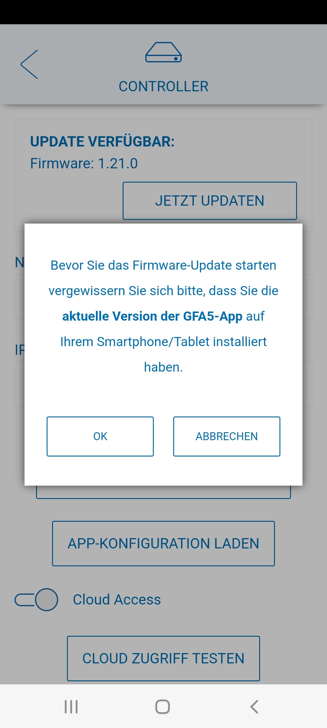 Es erscheint ein Hinweis, dass Sie die aktuelle Version der GFA5 auf Ihrem Gerät installiert haben sollten.