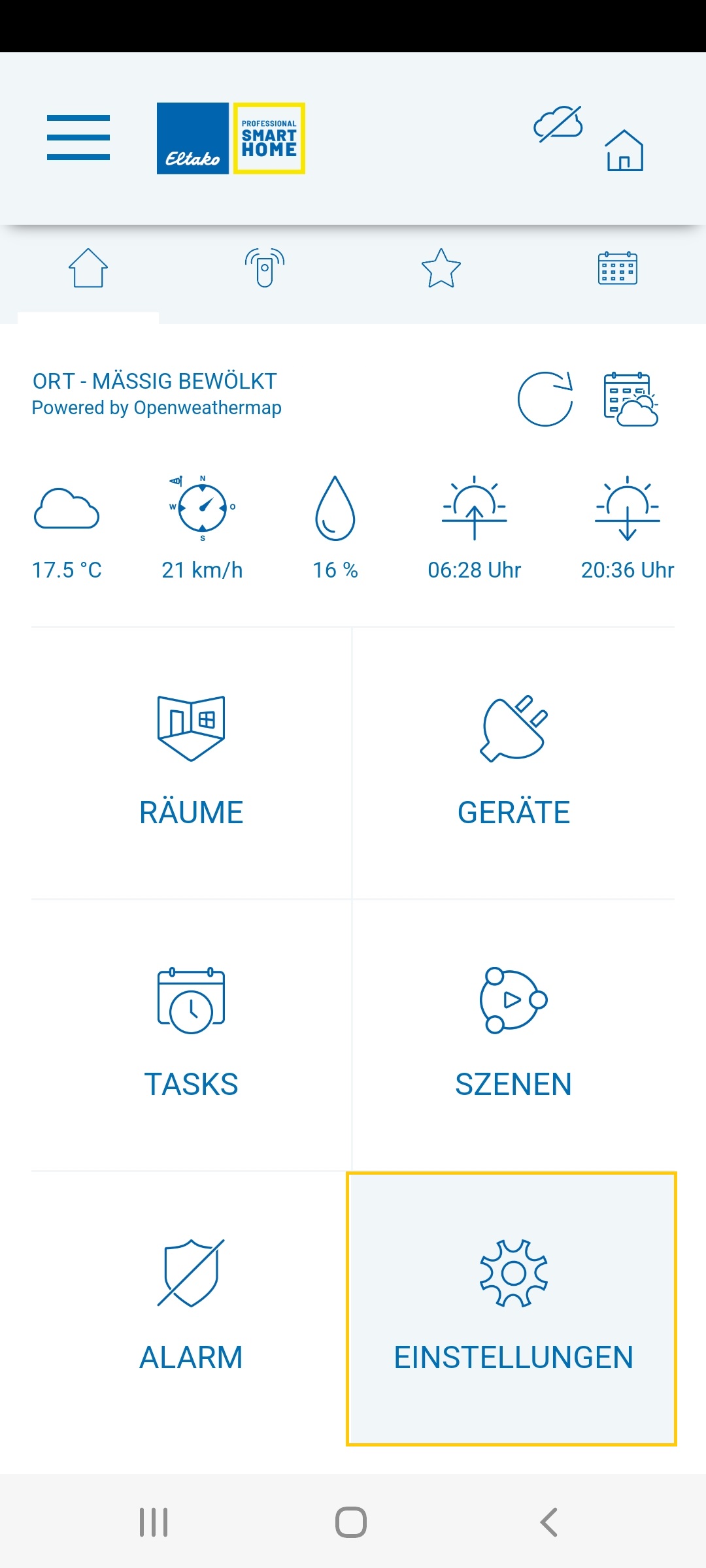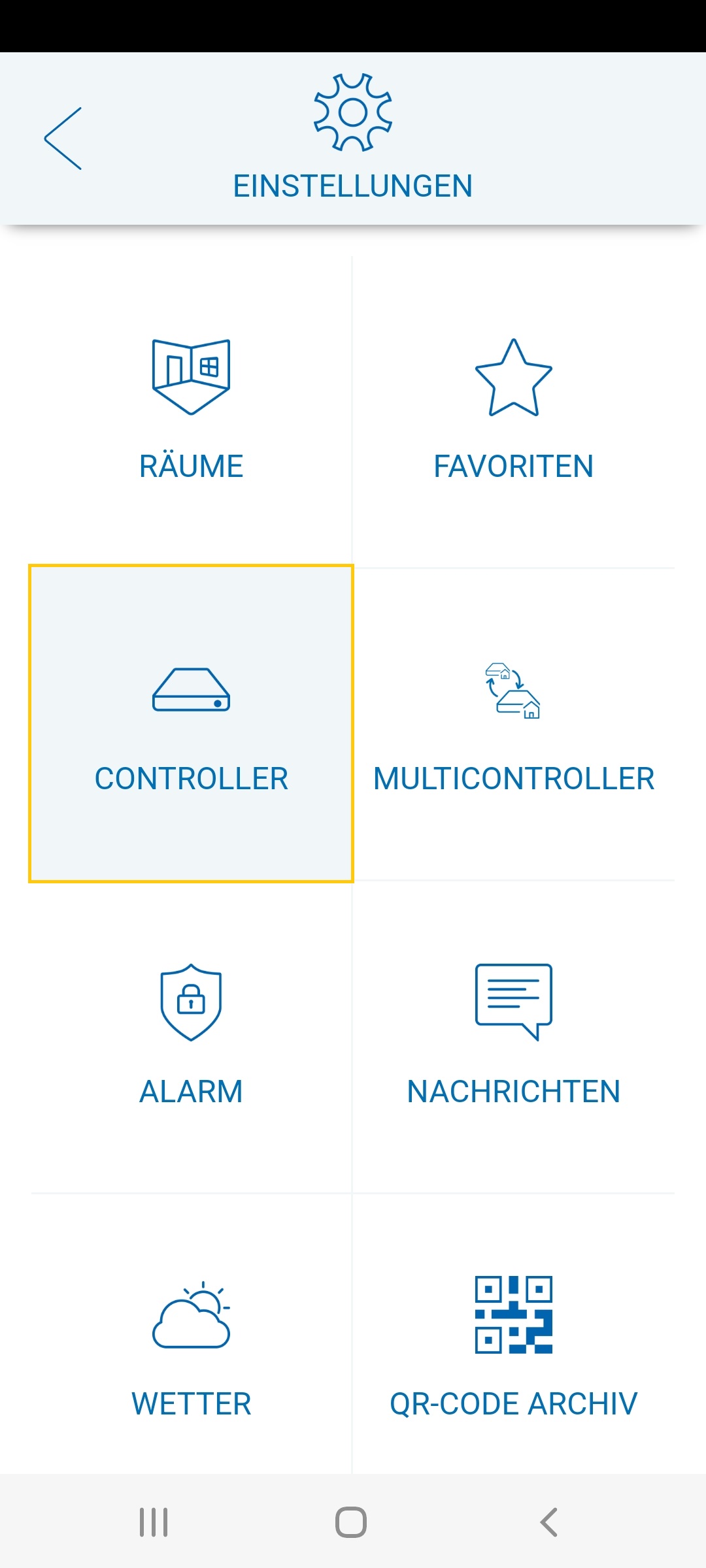 Um eine bereitstehende Firmware Ihres Controllers per App zu aktualisieren, gehen Sie im Hauptmenü zunächst in die EINSTELLUNGEN…