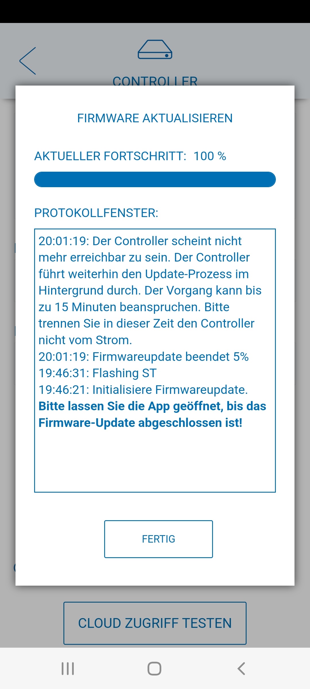 Nun können Sie den Fortschritt beobachten. Durch tippen auf FERTIG, schließen Sie den Vorgang ab
