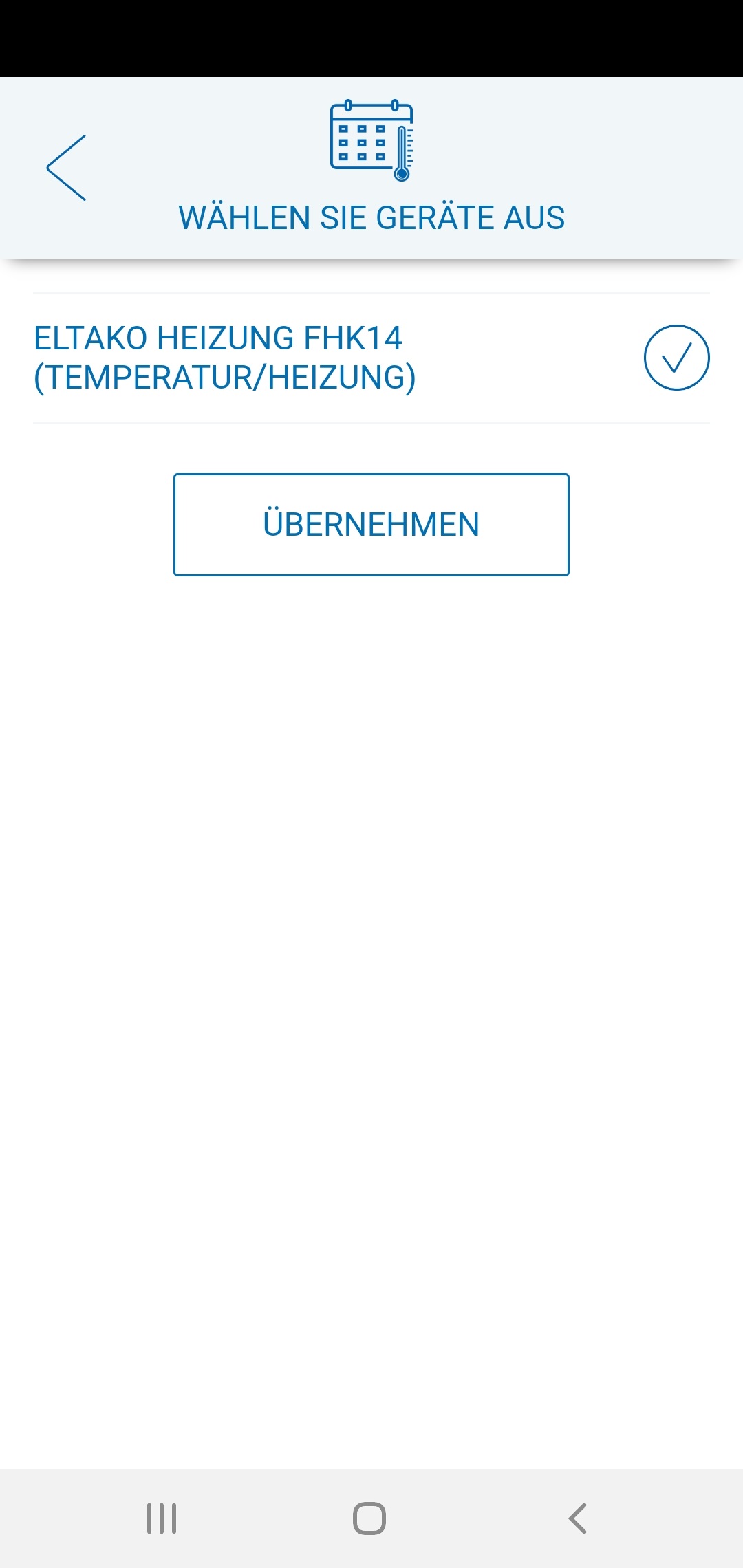 Zuletzt wählen Sie die Geräte aus, die für diesen Heizplan berücksichtigt werden sollen. Alle ausgewählten Geräte zeigen rechts einen Haken an.