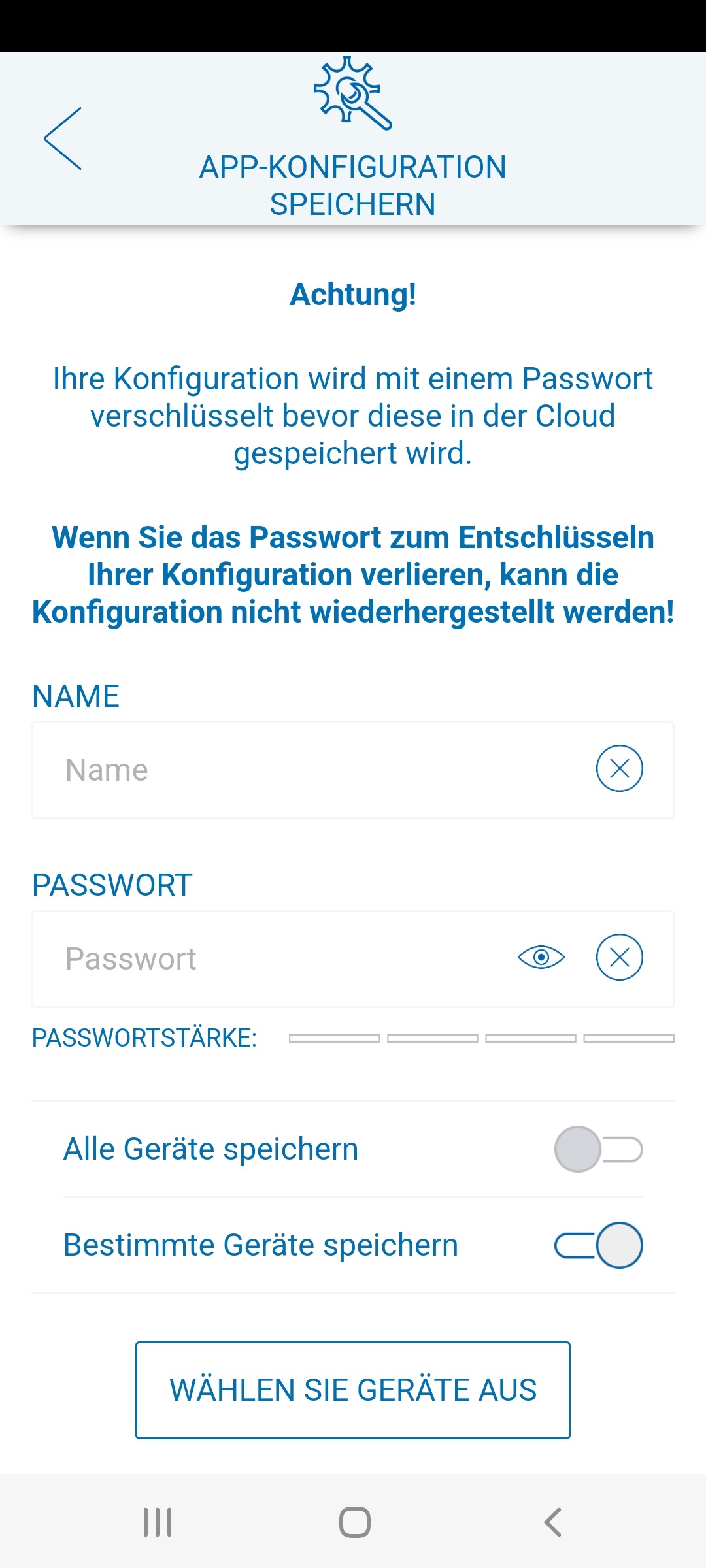 Gehen Sie dazu in ACCOUNT –> CLOUD –> APP-KONFIGURATION SPEICHERN und wählen NEU aus.