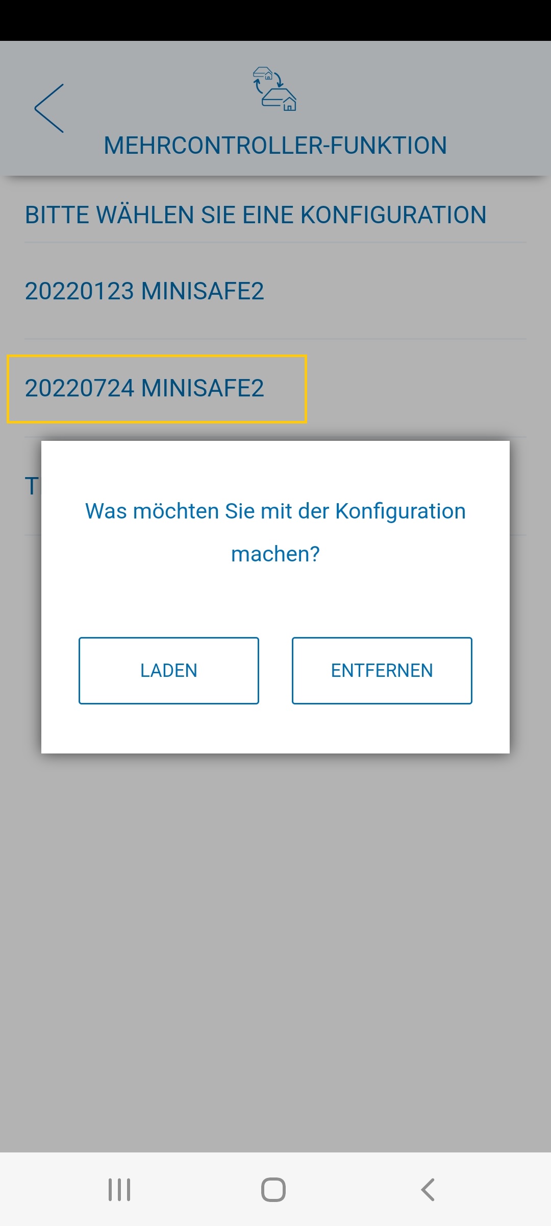 Die Mehrcontroller-Verwaltung ermöglicht den schnellen Wechsel zwischen verschiedenen Minisafe2-Objekten. Ein typischer Anwendungsfall wäre der Wechsel zwischen das eigene Zuhause und ein Wochenendhaus. Ebenfalls ist es denkbar, dass ein Elektroinstallateur schnell zwischen seiner eigenen Anlage und einer zu installierenden Kundenanlage wechseln möchte. Bei Bedarf kann mit jedem Neustart der APP GFA5 eine Auswahl der Konfigurationen angezeigt werden.