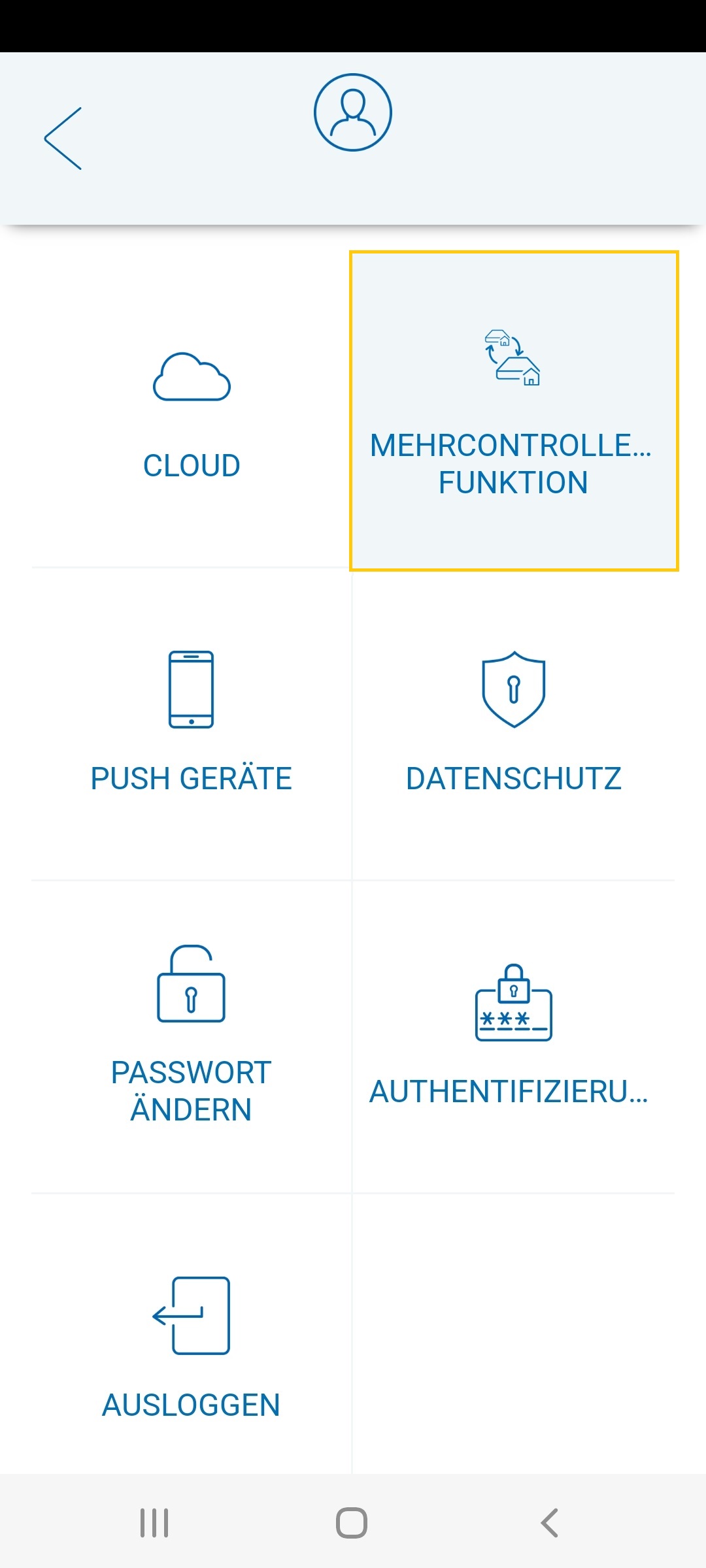 Damit es nicht dazu kommen kann, dass ein Nutzer Konfigurationen eines anderen Accounts laden kann, werden beim Ausloggen aus dem Account alle gespeicherten Mehrcontroller-Konfigurationen gelöscht, sodass diese erneut angelegt werden müssen. Die Auswahl, dass die Mehrcontroller-Steuerung verwendet werden soll, bleibt dennoch aktiv, da die App nicht auf Werkszustand zurückgesetzt wurde.